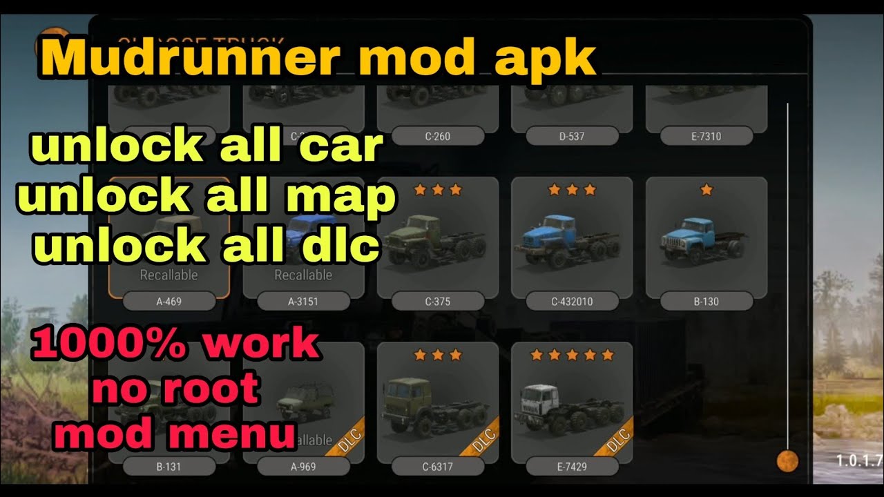 Free Download Mudrunner apk mod unlock all truck unlock all dlc